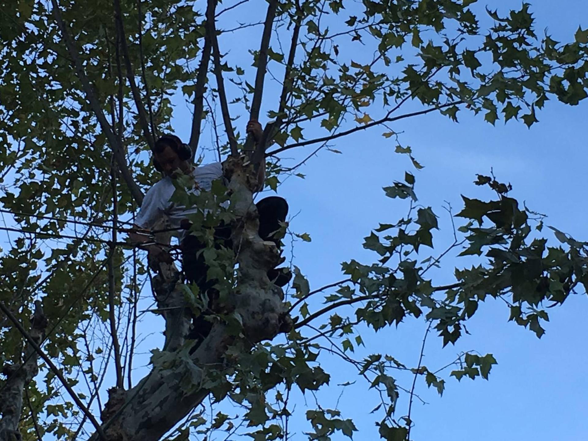 Pour réaliser sur une seule journée, la totalité de cette opération d'elagage de platanes à Avignon (84), nous avons mis en place une équipe de 9 élagueurs grimpeurs spécialisés dans l'elagage grande hauteur.