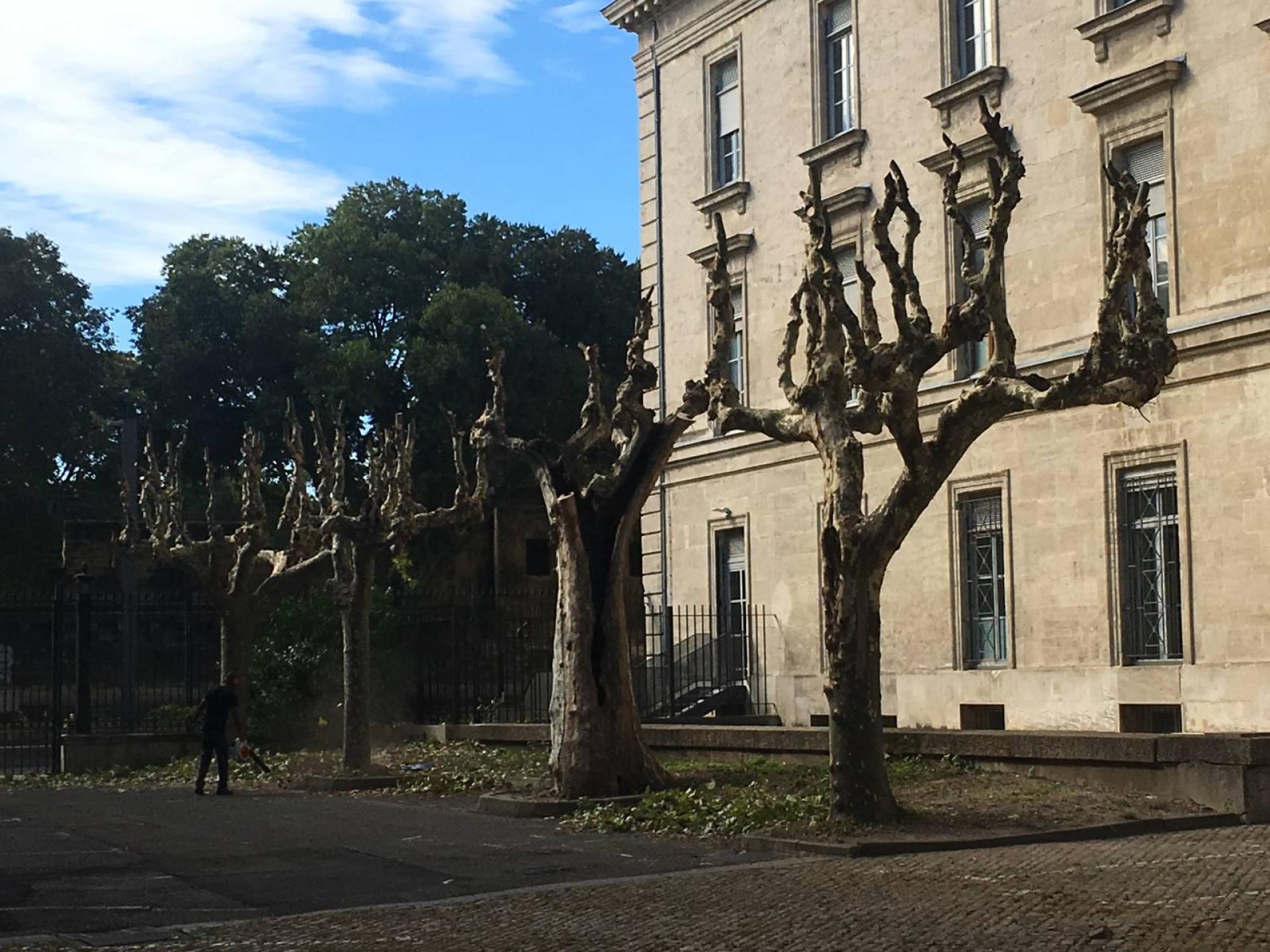Notre équipe d'élagueurs grimpeurs experts a été sollicitée par la cité administrative d'Avignon, pour réaliser l'elagage de 25 platanes.
