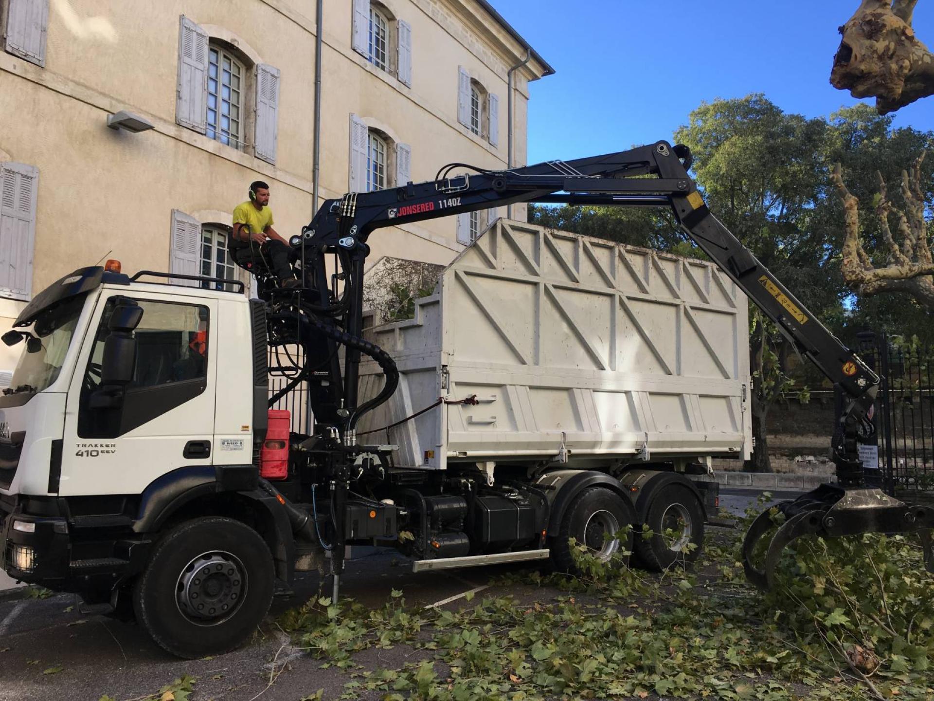 Aussi, cette opération d'élagage à Avignon a nécessité l'installation d'engins spécialisés a facilité et sécurisé le travail de nos techniciens :