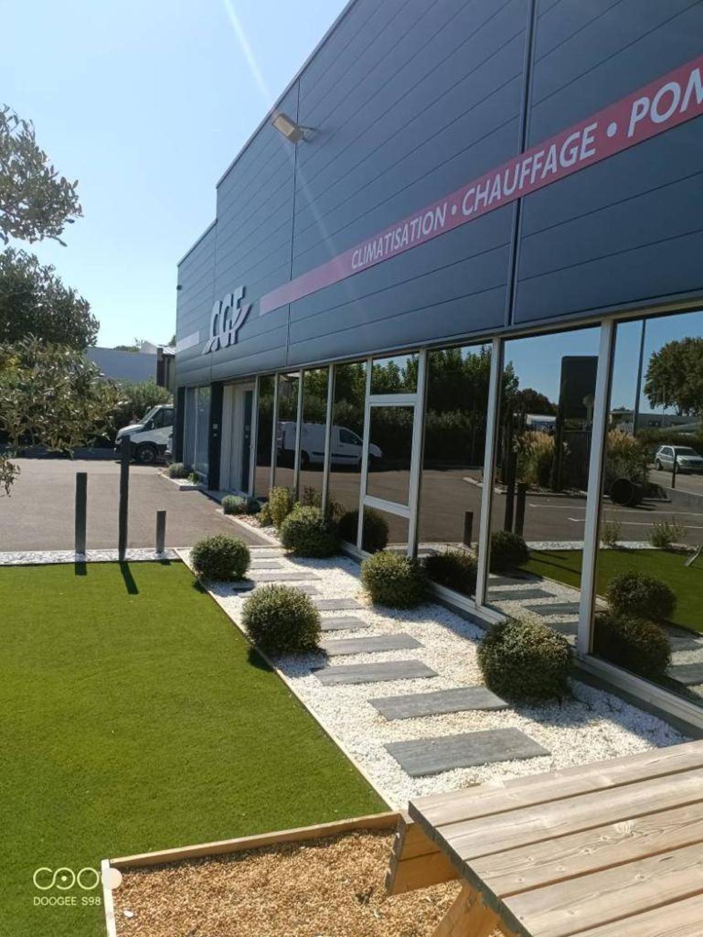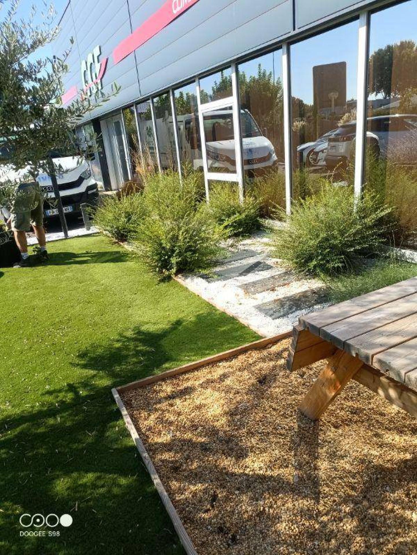 Nous sommes intervenus pour la société CGF qui souhaitait valoriser son local professionnel et offrir à ses visiteurs et employés un espace extérieur fonctionnel et accueillant.